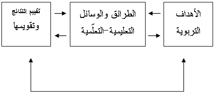 هذه الحلقات تؤثر وتتأثر بعضها بالبعض الآخر. فعلى ضوء الأهداف التعليمية-التعلّمية يتم اختيار الطرائق والوسائل والإجراءات. وبعد تنفيذ الدرس/النشاط تتم عملية تقييم النتائج المحصّلة.